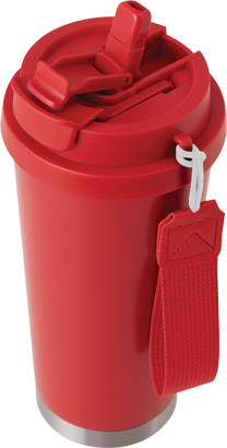 Vakuum-Isolierbecher MUG2GO, doppelwandig: innen aus recyceltem Edelstahl und außen aus Edelstahl, farblich passender 2-in-1-Deckel aus Kunststoff mit sicherem Schraubverschluss, Silikon-Dichtring, integrierter Trinköffnung sowie Trinkhalm zum Aufklappen und RPET-Trageschlaufe, Füllmenge ca. 500 ml, hält ca. 8 Stunden warm und bis zu 12 Stunden kalt, in Box