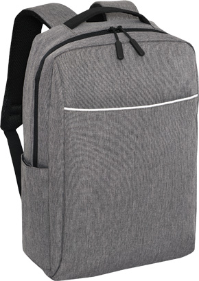 Rucksack GHENT: aus recyceltem Polyester (RPET), 1 Reißverschluss-Vorfach mit Reflektorstreifen, Reißverschluss-Hauptfach mit gepolstertem Innenfach für Laptop oder Tablet, Organizer mit 4 Steckfächern, 2 seitliche Einsteckfächer, gepolsterter Tragegriff, gepolsterte und verstellbare Schultergurte, Gurt als Reporterfunktion auf der Rückseite