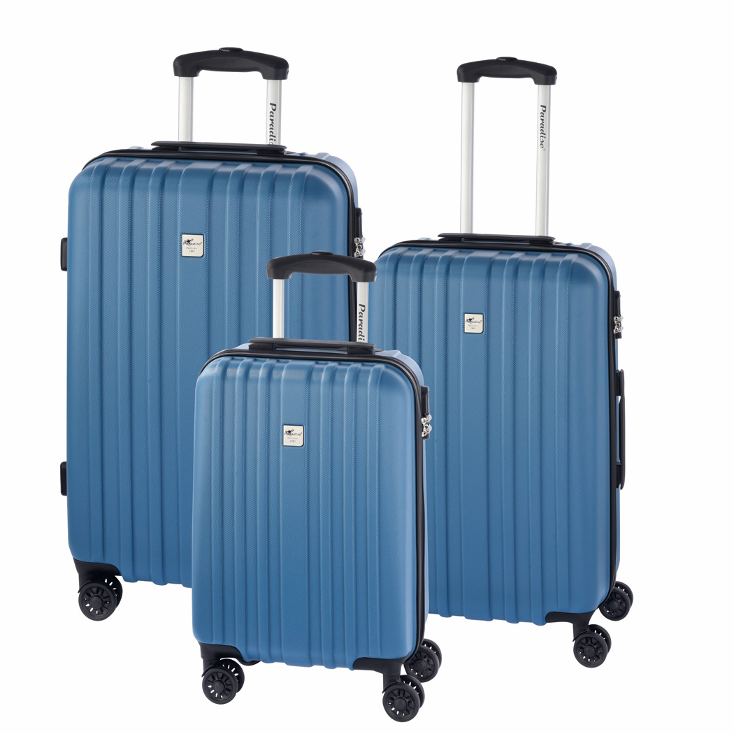 Trolley-Set AURORA, 3-teilig: beidseitige Packmöglichkeit, Innenraum mit Raumteiler, Netzfach und Packgurt, arretierbares Druckknopf-Trolleysystem, 4-Zwillingsrollen-360°-rundum-Leichtlauf-Fahrwerk, inkl. Zahlenkombinationsschloss