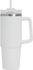 Vakuum-Isolierbecher DRINK DELUXE, doppelwandig: innen und außen aus Edelstahl, mit praktischem Griff, milchig-transparenter Kunststoff-Deckel mit sicherem Schraubverschluss, Silikon-Dichtring, Trinköffnung mit Drehverschluss und transparentem Strohhalm, beschichteter Boden für gute Oberflächenhaftung, Füllmenge ca. 900 ml, hält ca. 5 Stunden warm und bis zu 10 Stunden kalt, in Box