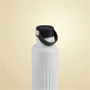 Vakuum-Isolierflasche WAVE TRAIL, doppelwandig: innen aus recyceltem Edelstahl und außen aus Edelstahl, schwarzer Kunststoff-Deckel mit sicherem Schraubverschluss, Silikon-Dichtring und Kunststoff-Trageschlaufe, Füllmenge ca. 500 ml, hält ca. 8 Stunden warm und bis zu 12 Stunden kalt, in Box