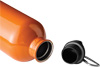 Trinkflasche STEELTRANSIT, einwandig: aus recyceltem Edelstahl, schwarzer Kunststoff-Deckel mit sicherem Schraubverschluss, Silikon-Dichtring, Tragegriff, Schlüsselring und Karabinerhaken (der Karabiner ist NICHT als Sicherung beim Klettern geeignet), Füllmenge ca. 750 ml
