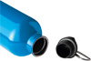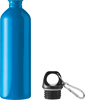Trinkflasche STEELTRANSIT, einwandig: aus recyceltem Edelstahl, schwarzer Kunststoff-Deckel mit sicherem Schraubverschluss, Silikon-Dichtring, Tragegriff, Schlüsselring und Karabinerhaken (der Karabiner ist NICHT als Sicherung beim Klettern geeignet), Füllmenge ca. 750 ml