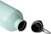 Trinkflasche STEELTRANSIT, einwandig: aus recyceltem Edelstahl, schwarzer Kunststoff-Deckel mit sicherem Schraubverschluss, Silikon-Dichtring, Tragegriff, Schlüsselring und Karabinerhaken (der Karabiner ist NICHT als Sicherung beim Klettern geeignet), Füllmenge ca. 750 ml