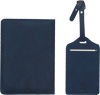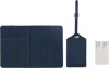 Reiseset VISA, 2-teilig: bestehend aus handlicher Reisepassbörse mit 4 Einsteckfächern für Geldkarten, 1 Fach für Bordkarten, 1 Fach für den Reisepass, mit Gummiband zum Verschließen und Kofferanhänger mit verdecktem Adressfeld und Anhängeband mit Schnalle, in Box