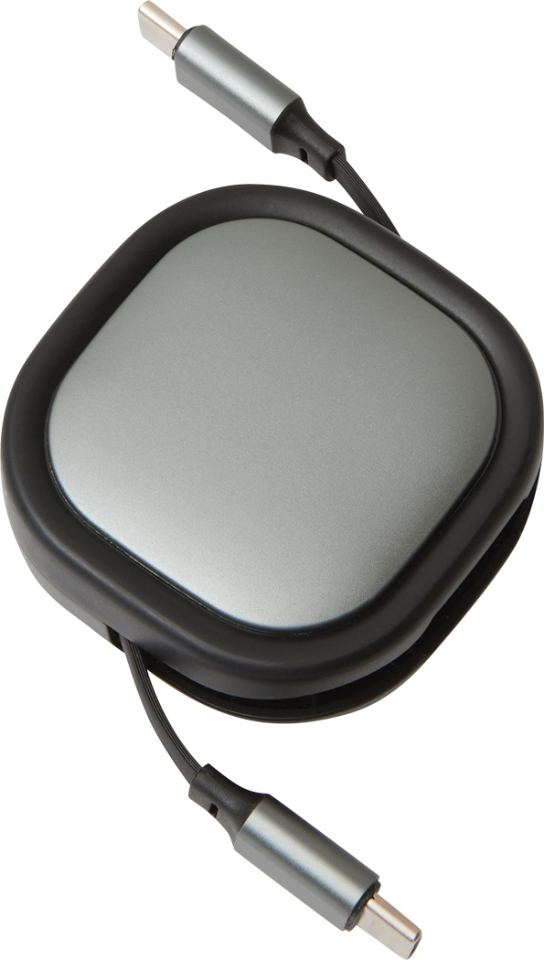 Lade- und Datenkabel C2C, aufrollbar (Länge: ca. 90 cm): zum Aufladen von Smartphones, USB-betriebenen Geräten und Laptops (60W Leistungsübertragung) sowie zum Übertragen von Daten, inkl. 2 Ladesteckern (USB Typ C), Frontplatte aus Aluminium