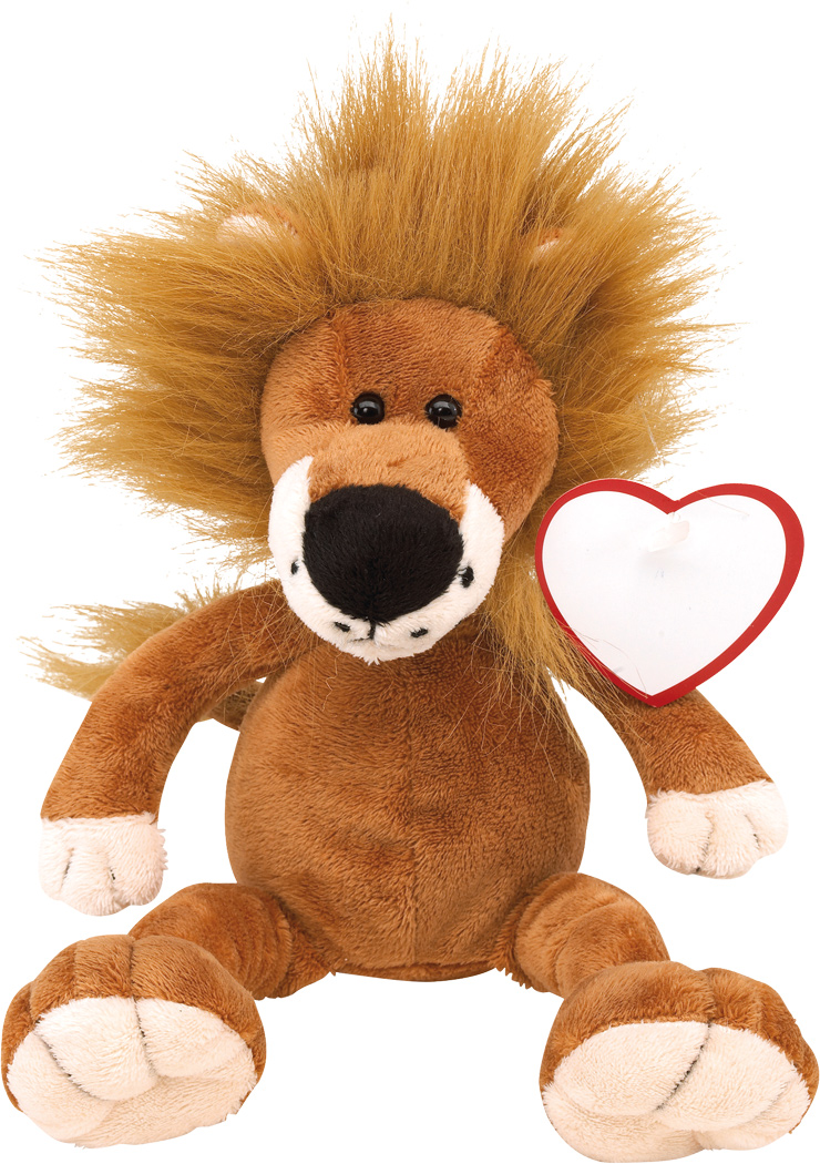 Plüsch-Löwe FETZY: mit weichem Fell und Herz zum Bedrucken