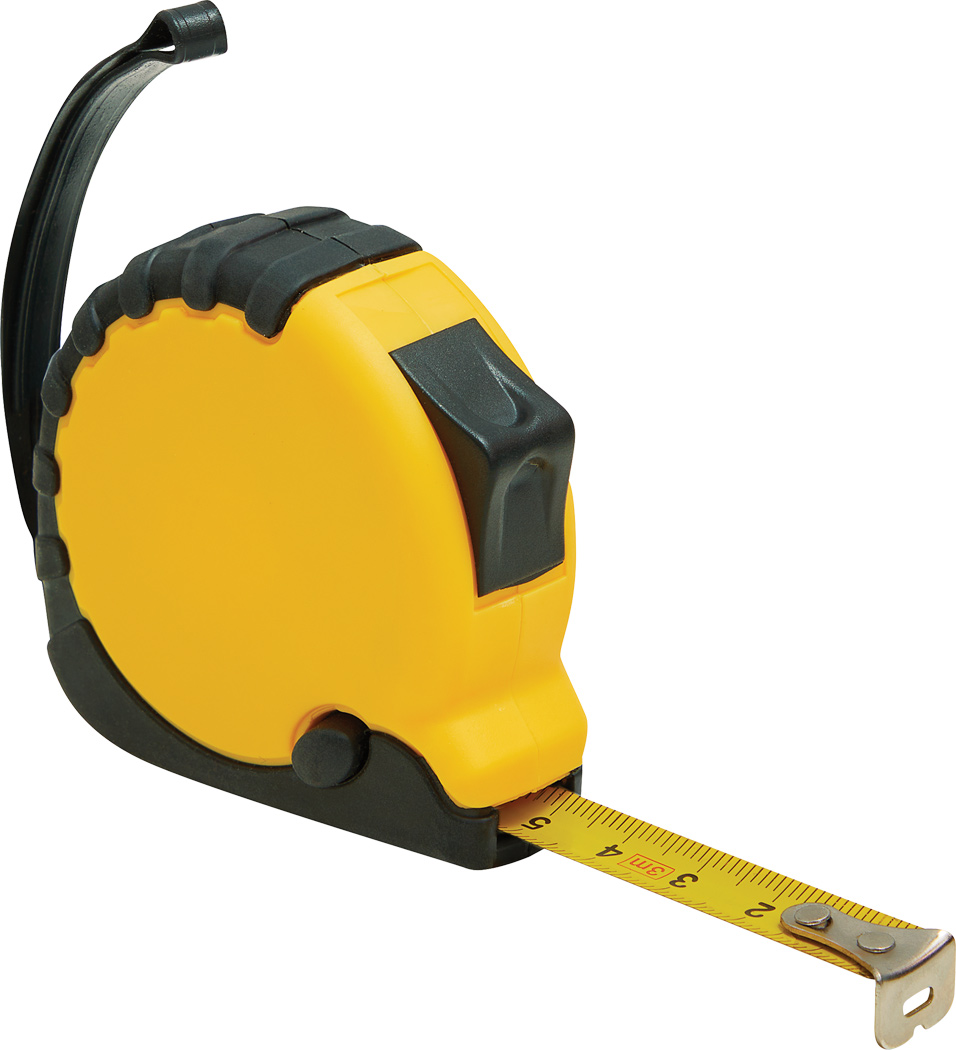 Measuring tape ELEMENTAL I: yellow tape made of steel, automatic stopper, belt clip, and carrying loop, 3 m