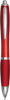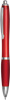 Ballpoint pen SWAYRABS: with curvy barrel made of recycled plastic, rubberised grip, push mechanism, jumbo refill, blue ink