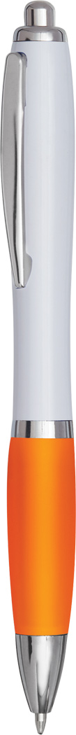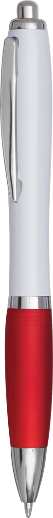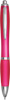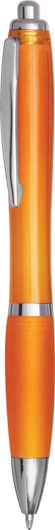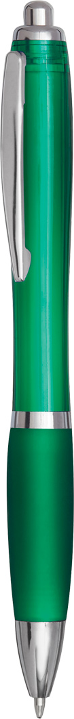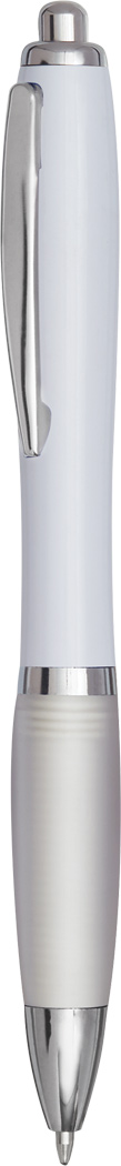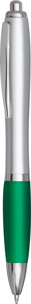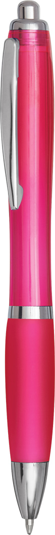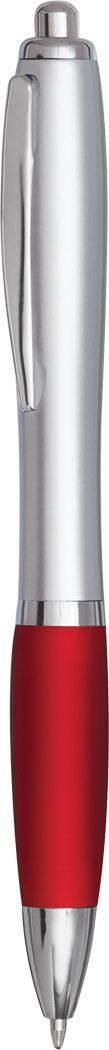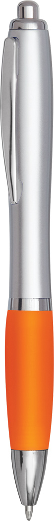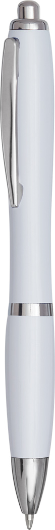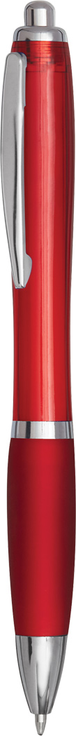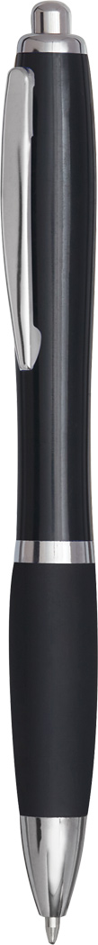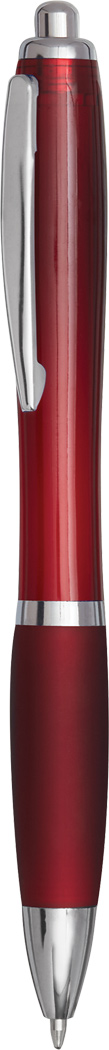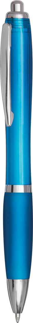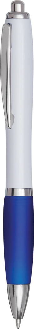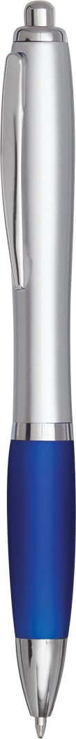 Ballpoint pen SWAYRABS: with curvy barrel made of recycled plastic, rubberised grip, push mechanism, jumbo refill, blue ink