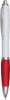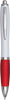Ballpoint pen SWAYRABS: with curvy barrel made of recycled plastic, rubberised grip, push mechanism, jumbo refill, blue ink