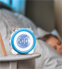 Alarm clock MODERN RETRO: with digital time and date display, two alarm times can be set, various alarm times for different weekdays possible, snooze function at five-minute intervals, blue background light, blue control keys at the sides, battery-operated (3 x AAA battery not included)