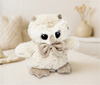 Plush owl HELGA: extra soft fur – ears, nose, feet offset with cloth, with cloth bow tie at the neck, heart to print on