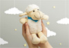 Plush sheep ROSI: with soft fur and light blue scarf (packed separately) for printing