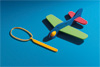 4-piece aeroplane SKY HOPPER to assemble, consists of plastic slingshot with elastic band, 3 pieces of foamed rubber, packed in PVC bag