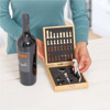Set de vin BAMBOO CHESS avec jeu d’échecs: composé d’un sommelier en acier inoxydable, d’un anneau d’égouttage en acier inoxydable, d’un bouchon de bouteille en métal, d’un bec métallique et de pièces d’échecs en bois, dans une boîte en bambou avec plateau de jeu sur le couvercle