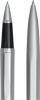 Zestaw do pisania COMTESSE zawiera długopis z obracaną obsadką i pióro kulkowego. Wykonane z trwałego, satynowego metalu z kontrastującymi chromowanymi elementami.