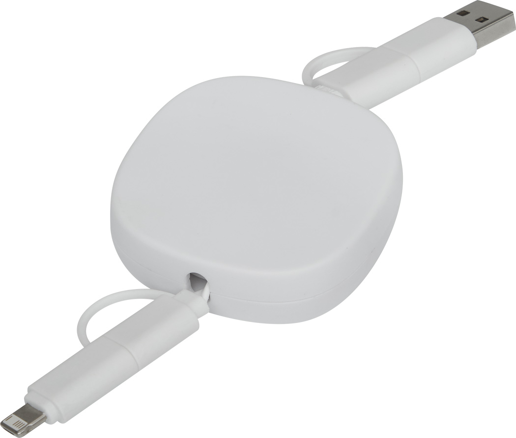 Кабель для зарядки и передачи данных TRANSFER SQUARE : на катушке (длина около 92 см), для зарядки электронных устройств, включая ноутбуки (передача мощности 65 Вт), а также для передачи данных, с комбинированным входным разъёмом USB...