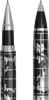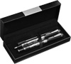 Письменный набор INTERCONTINENTAL: состоит из металлической ручки-роллера с колпачком (чёрные чернила) и металлической шариковой ручки с поворотным механизмом (синие чернила), с блестящей хромированной картой мира на корпусе; поставляется в стильной коробке с алюминиевой пластиной