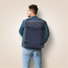 Рюкзак STEWARD: два передних кармана на молнии, один из них с органайзером (3 вставных отделения, 2 держателя для ручек), большое мягкое основное отделение на молнии с ремнём-фиксатором, мягкое отделение для ноутбука на молнии, по одной усиленной верхней и боковой ручке, мягкие плечевые ремни эргономичной формы и мягкая спинка, ремень на задней стороне для фиксации на чемодане, с каждой боковой стороны по два компрессионных ремня с защёлкой.