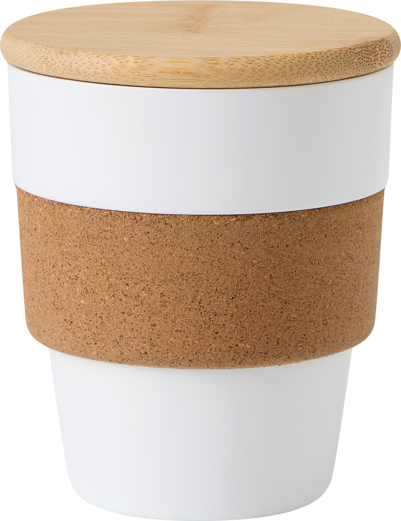 Vacuum drink mug STEELJOURNEY , double-walled: inside and outside made of stainless steel, with cork bottom and practical handle, plastic lid with silicone sealing ring and integrated sliding drinking opening, capacity approx. 350 ml,...