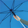 Kišobran sa automatskim otvaranjem RUMBA sa aluminijumskom osovinom, rebrima od fiberglasa, metalnim vrhovima, aluminijum - EVA drška i poliesterskim pokrivačem i torbicam, zatvaranje sa čičak trakom
