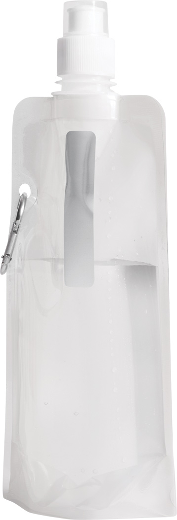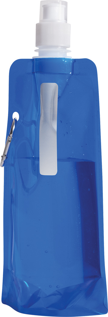 Water bag AQUAFOLD: foldable, can be rolled up when empty, transparent push-pull cap, with carabiner (the carabiner is NOT suitable for climbing), capacity approx. 400 ml